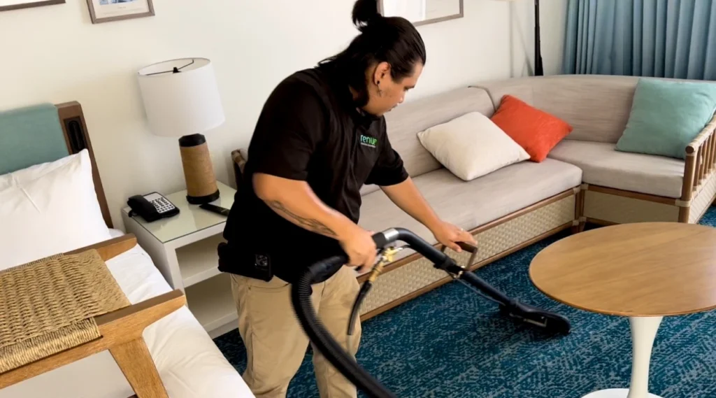 Renue Hawaii’s Hotel Guestroom Specialized Services use expert techniques to remove tough stains, eliminate odors, and refresh carpets and upholstery.